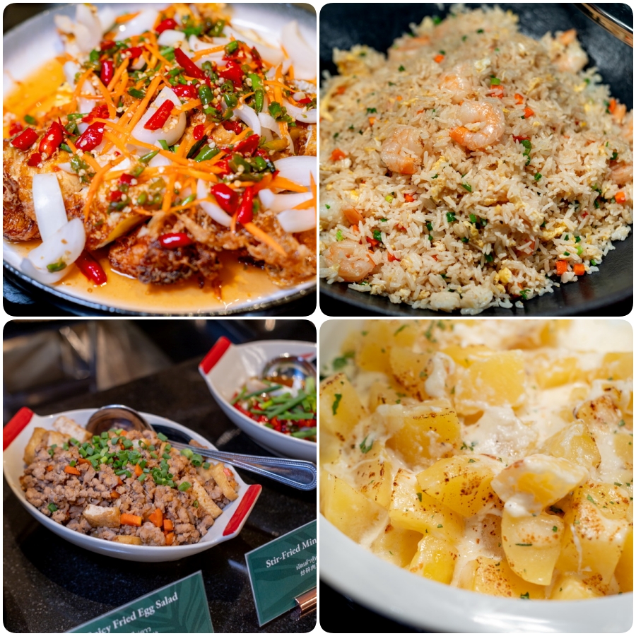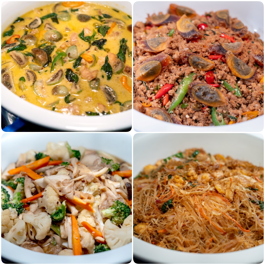 ในมุมของอาหารไทย ให้ 9 มีข้าวผัดกุ้ง ยำไข่ดาว กะเพราไข่เยี่ยวม้า แกงเขียวหวานไก่ ผัดซีอิ้ว ก๋วยเตี๋ยว ขนมเบื้อง