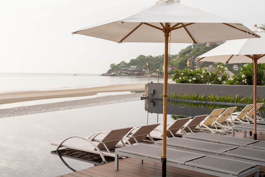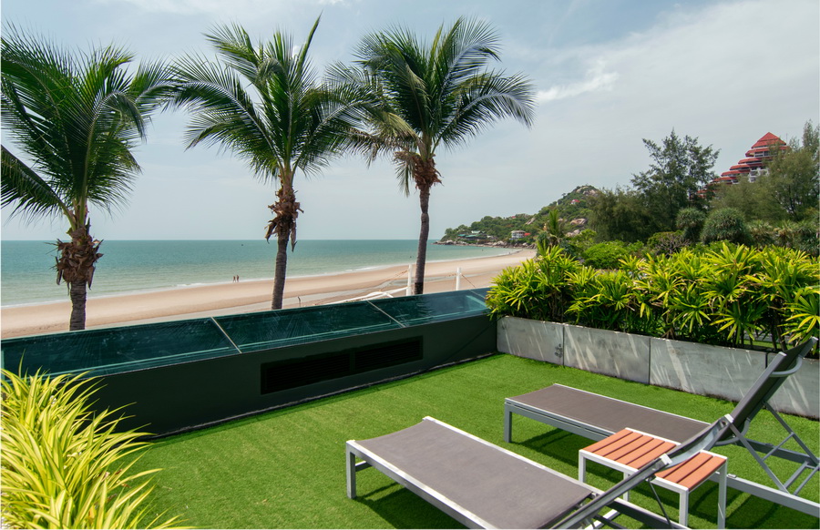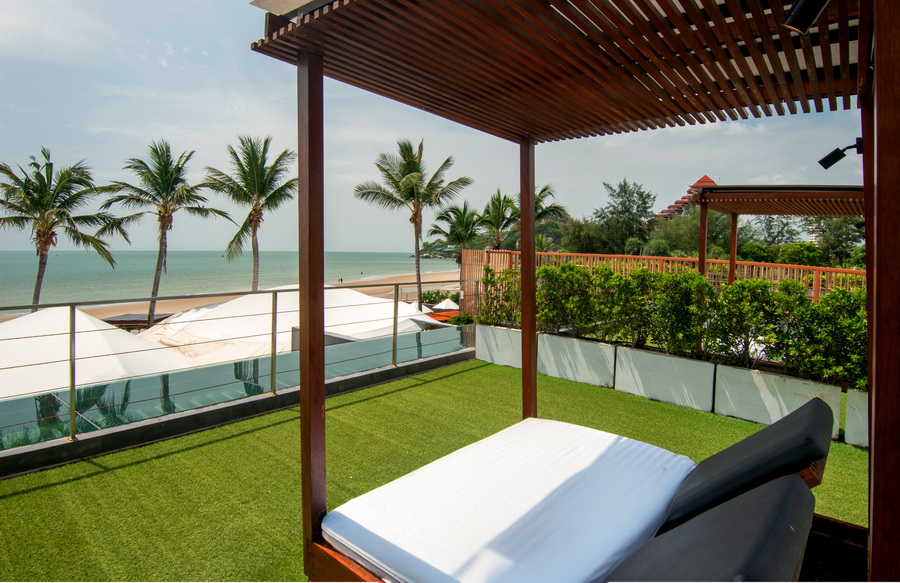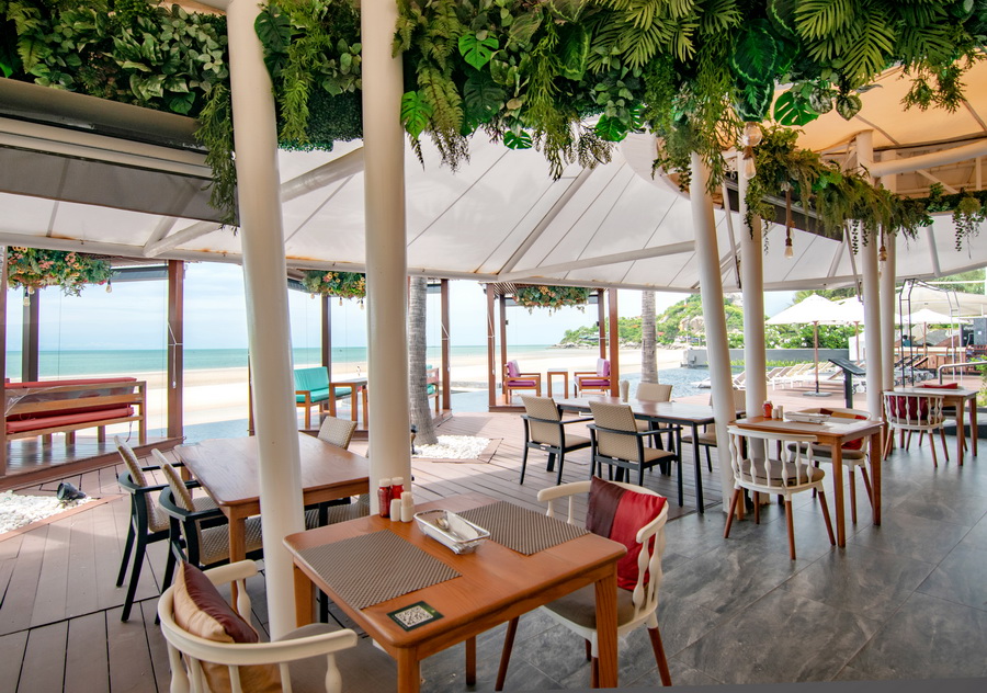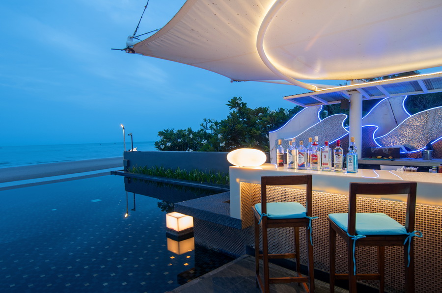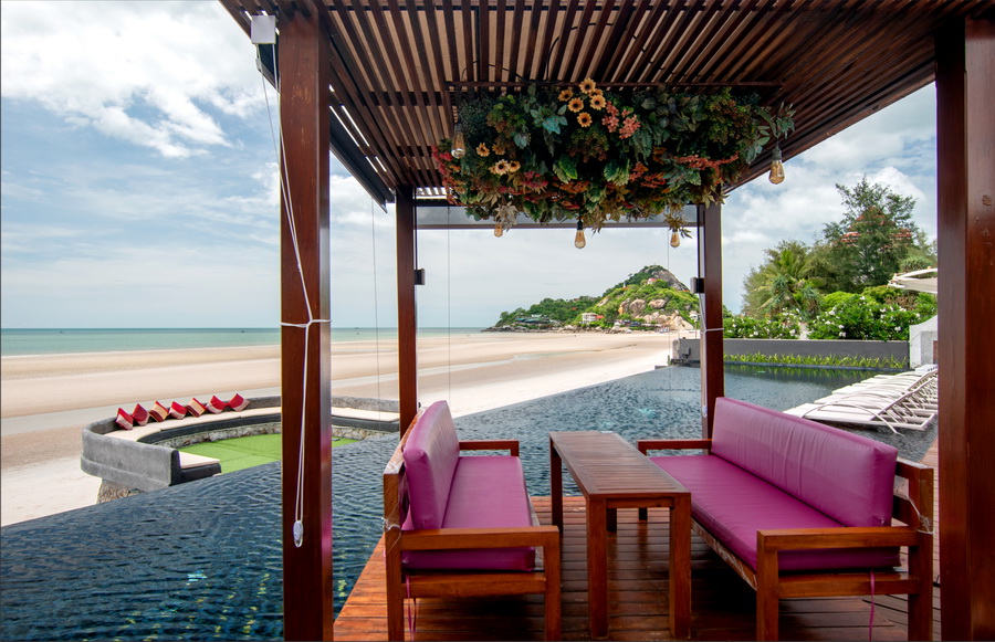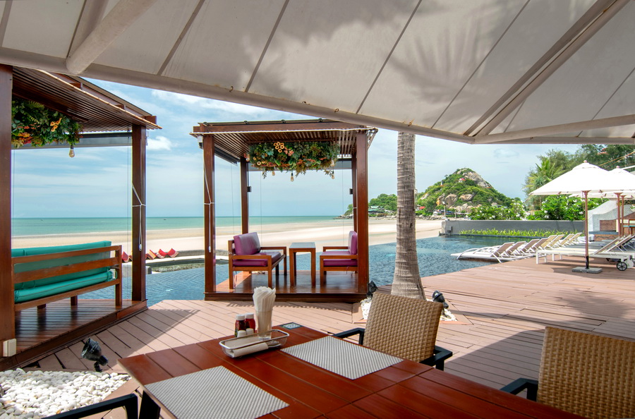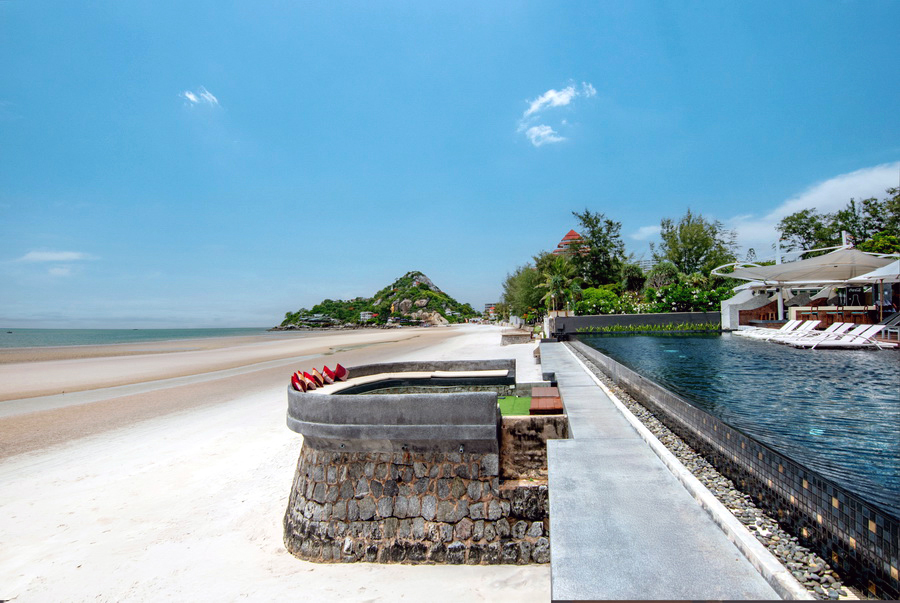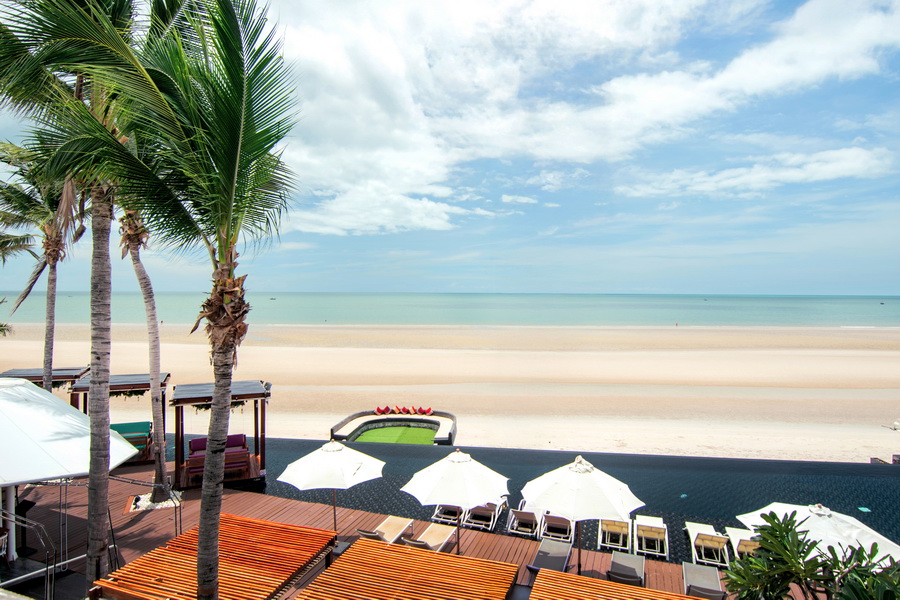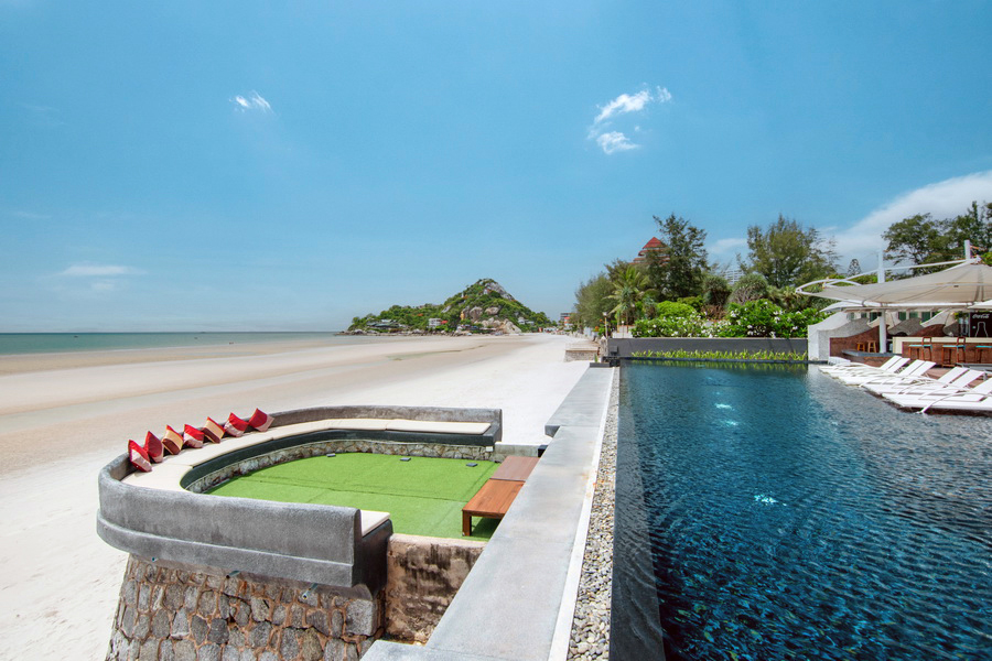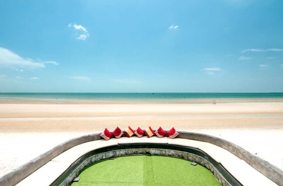 จุดที่สวยที่สุดของโรงแรม คงจะเป็นโซนหน้าหาดทั้งหมด ซึ่งเป็นที่ตั้งของสระว่ายน้ำหลัก และ ห้องอาหารหลักของโรงแรมฮะ ส่วนตัวว่าสระที่นี่สวยนะ ถึงแม้ขนาดจะไม่ได้ใหญ่มาก เปิดโล่งหมด ไม่มีอะไรบัง แถมปะทะหน้าหาดเต็มๆเลยจริงๆ (สระที่ปะทะหน้าหาด วิวตรงๆสวยๆ แบบนี้ในหัวหินมีไม่เยอะฮะ)