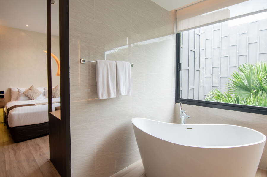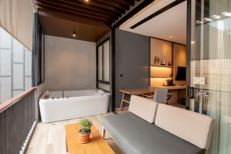 Deluxe Room ขนาด 39 ตรม เป็นห้องเริ่มต้นของที่นี่ จะอยู่ก้านบนลอบบี้ มีอ่างอาบน้ำให้ตั้งแต่ห้องเริ่มต้นเลยฮะ