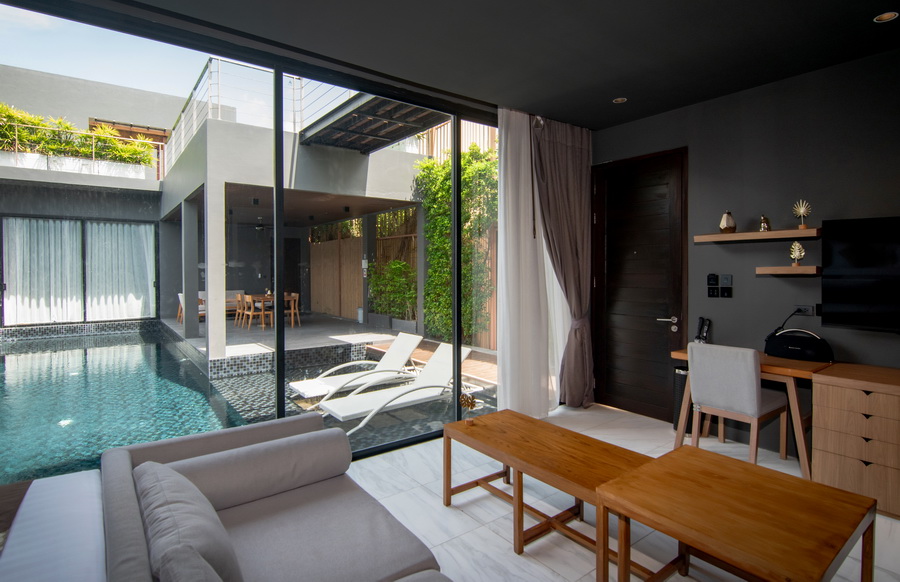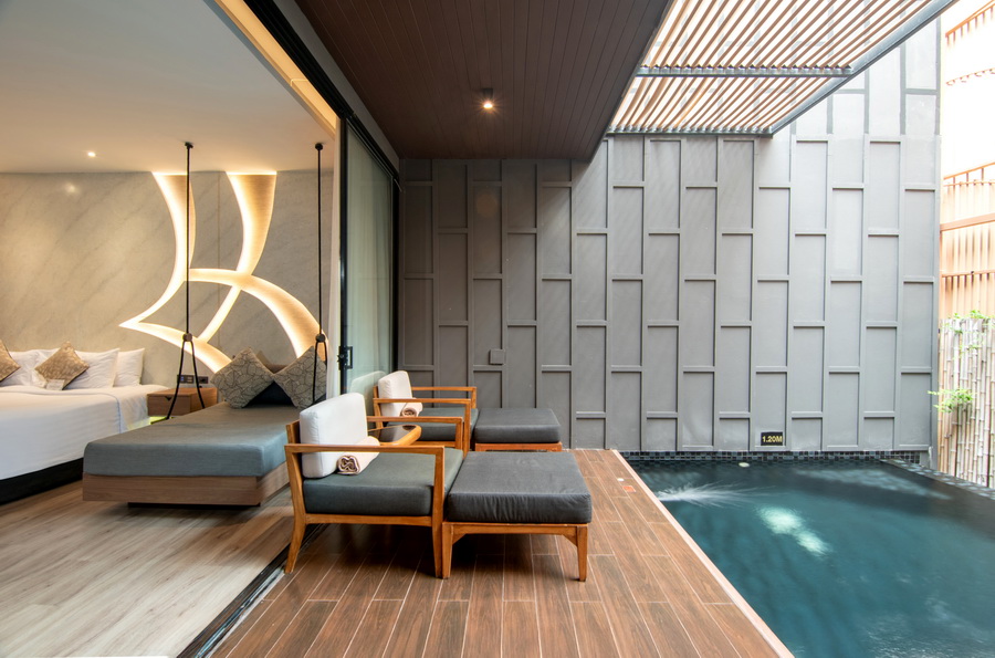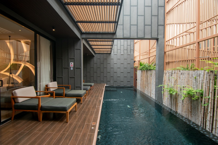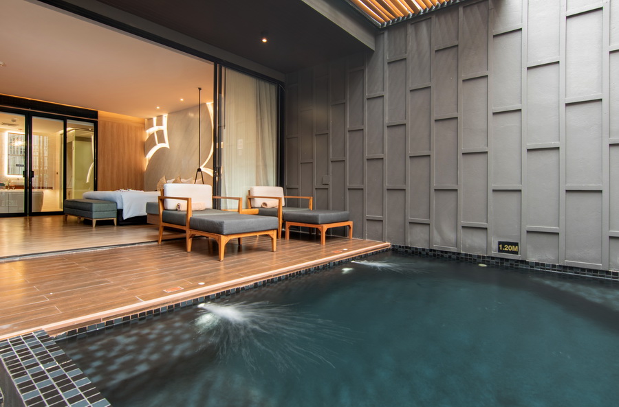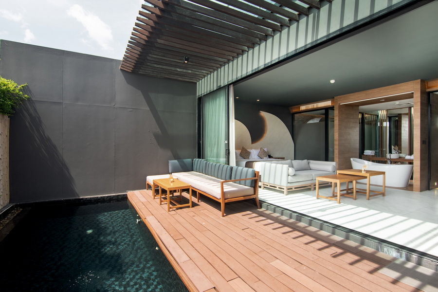 2-Bedroom Suite with Private Pool ขนาด 172 ตรม ห้องนี้จะเหมือน Suite with Private Pool ทุกอย่าง แต่เป็นห้องที่มี 2 ห้องเชื่อมต่อกัน ทำให้สระยาวเป็น 2 เท่า