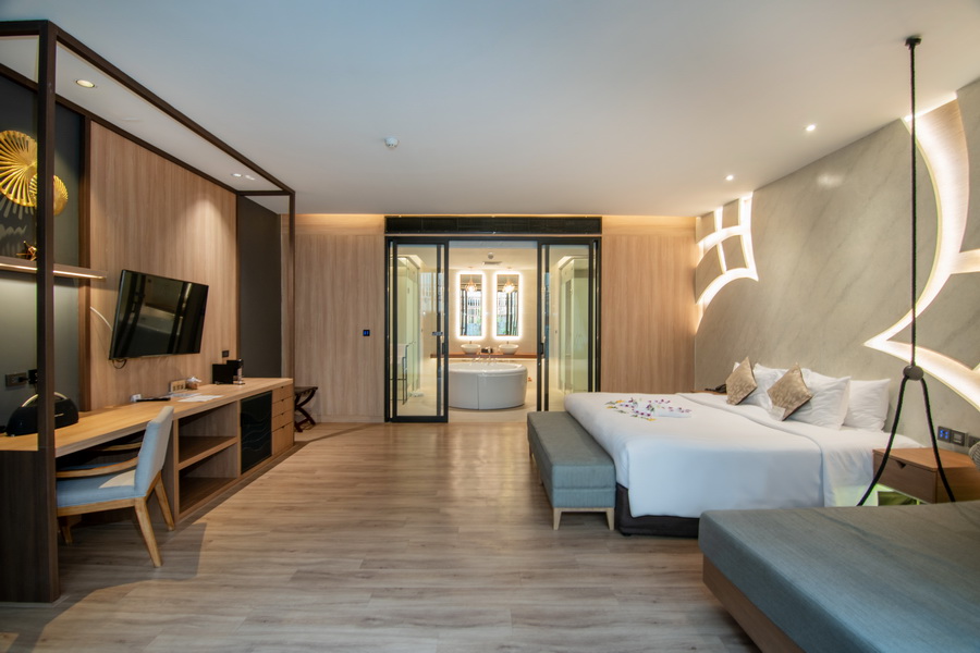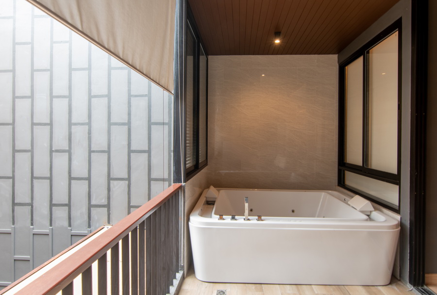 Jacuzzi Suite ขนาด 43 ตรม (ไม่มีวิว) จุดขายห้องนี้คือเป็นห้องที่มีอ่างจาฯ ขนาดใหญ่ที่ระเบียง (ขออภัยด้วย ไม่มีภาพห้องน้ำ ห้องน้ำจะเป็น สี่เหลี่ยมผืนผ้ายาวๆ)