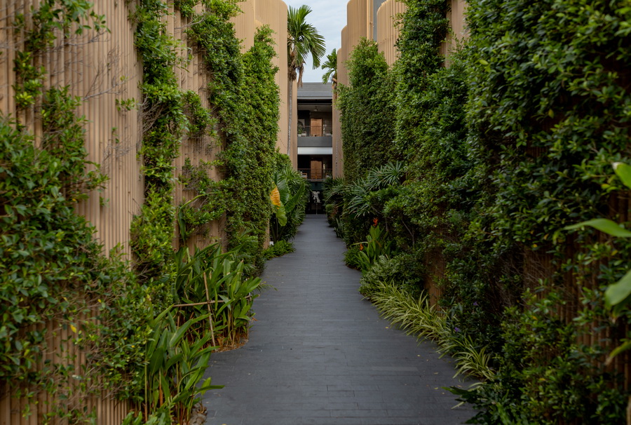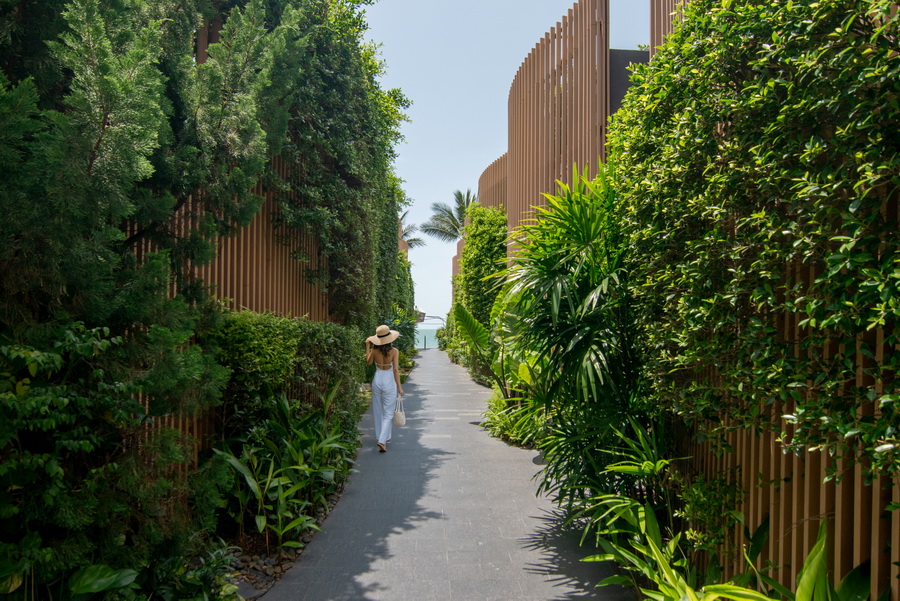 ไปฮะ เราไปสำรวจโรงแรมกันต่อดีกว่า จุดนี้เป็นทางเดินที่เชื่อมระหว่างห้องพักไปหน้าหาด ถือเป็นอีกจุดที่มีคนมาถ่ายรูปกันเยอะ ใช้เวลาเดินไม่เกิน 2 นาที จากลอบบี้ก็ถึงหาดล่ะ