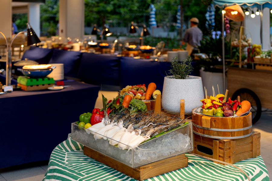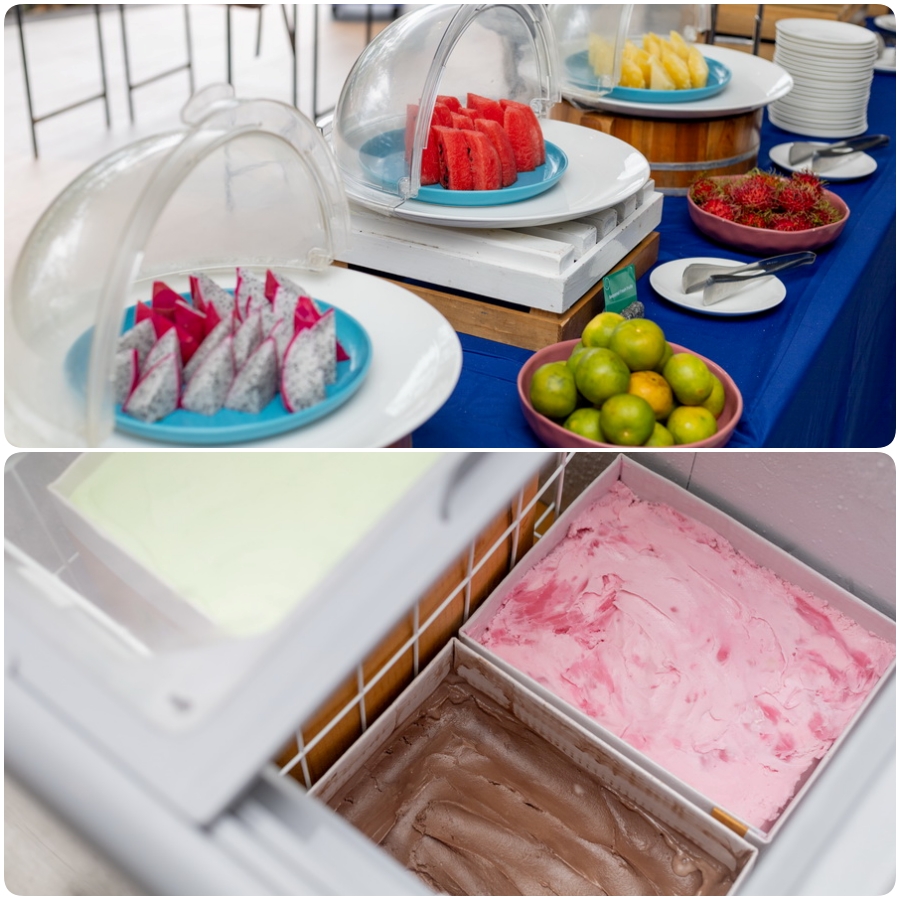ปกติบุฟเฟ่ต์จะขายบริเวณด้านนอกห้องอาหาร EAT ฮะ แต่ถ้าวันไหนฝนตก จะย้ายเข้าไปทานในห้องอาหารแทน