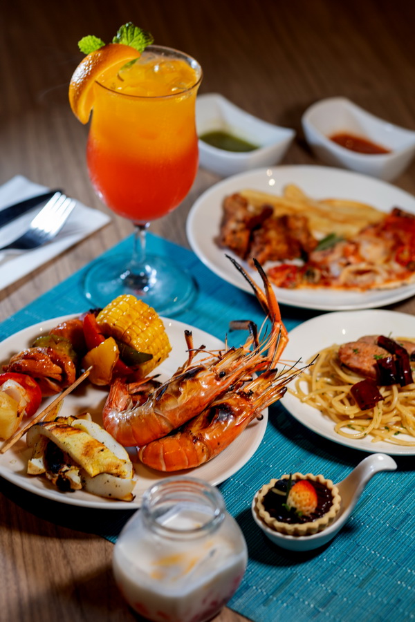 ในทุกวันโรงแรมจะมีบุฟเฟ่ต์บาบีคิว+ซีฟู้ดขายด้วยฮะ โดยทุกวันจะมีพระเอกเป็น กุ้ง+หมึก+บาบีคิว ย่าง ส่วนไอเทมอื่นๆก็จะเปลี่ยนไปทุกวัน ราคาต่อหัวจะอยู่ที่ 599 (ถ้าบวกเครื่องดื่มเพิ่มอีก 100 บาท )