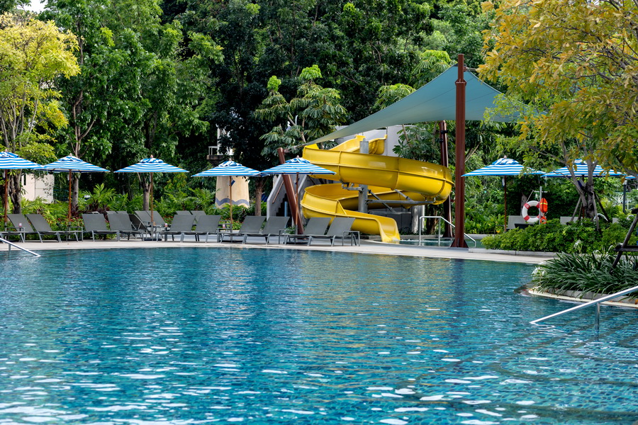 จุดขายหลักเลยนอกจากเรื่องทำเลก็คงจะเป็นเรื่อง สระว่ายน้ำและสวนน้ำ สระใหญ่ก็คือใหญ่มากจริงๆ แถมบรรยากาศดี ต้นไม้เยอะ ฟีลรีสอร์ทมาก ส่วนสวนน้ำไม่ได้ใหญ่นะ แต่มีข้อดีคือสไลเดอร์ใหญ่ที่เล่นได้ทั้งเด็ก ทั้งผู้ใหญ่ ส่วนคิดส์คลับในโรงแรมไม่มีฮะ แต่จะมีสนามเด็กเล่นสำหรับเด็กอยู่ตรงสวนน้ำนี่เลยฮะ (มีการ์ดดูแลให้นะตรงนี้ แต่ไม่มีพี่เลี้ยงมาดูแลเด็กๆให้ฮะ)