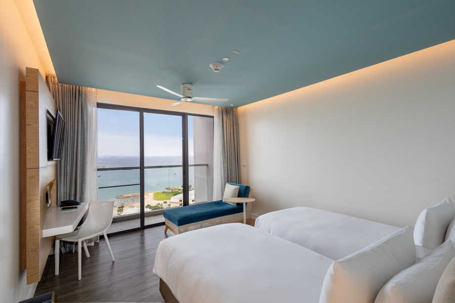 ห้องพัก วันนี้ลุงพักห้อง ดีลักซ์ซีวิว ถือเป็นอีกโรงแรมที่วิวดีมากๆ การตกแต่งดูสบายๆ ทันสมัย ไม่หรูหรา แต่สวยนะ โทนสีสบายตามาก แต่ห้องอาจจะมีขนาดเล็กหน่อยฮะ คิดว่า อยู่ ญ 2 ด 1 กระเป๋า 1 ใบ กำลังดีฮะ (โทนของห้องพักแอบมีโทนและฟีลคล้ายๆ ฮอลิเดย์อินน์ พัทยา นะ )