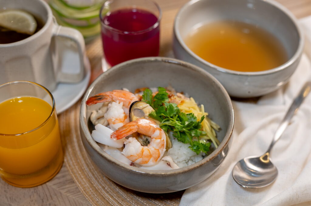 บุฟเฟ่ต์อาหารเช้าที่ห้องคลับ จะเน้นอาหารจานหลักเป็นแบบทำจานต่อจานสั่งได้ไม่อั้น+ไลน์อาหารขนาดมินิมอล มี่จัดเสริฟ เบเกอรี่ สลัด ของทานเล่น และเครื่องดื่ม ต่างๆ โดยรวมไลน์อาหารค่อนข้างเบสิคมาก ไม่หวือหวา แต่ที่หวือหวาจะเป็น เมนูอาหารเช้าแบบอลาคาร์ต บอกเลยว่าทางนี้ ค่อนข้างเลือกใช้วัตถุดิบได้พรี่เมี่ยมจริงๆ เรียกว่าซีฟู้ดจัดเต็มมาก มีหลายเมนูที่ชอบเลย เช่น หมี่แกงปู กะเพราทะเล ข้าวต้มทะเลแห้ง ไข่เจียวปู Acai Bowl
