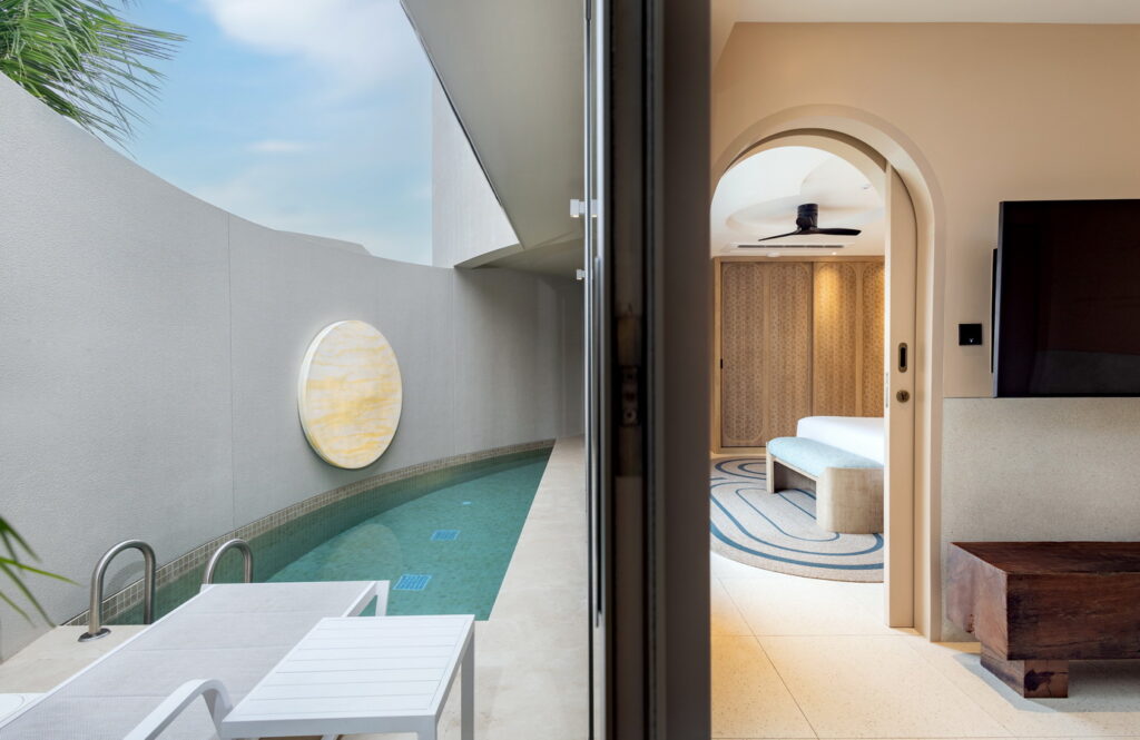 ห้องพักในโซนนี้ทั้งหมดจะเป็นวิลล่าฮะ เอาจริงๆ หน้าตาแทบจะเหมือนกันหมด แบ่งกันตามพื้นที่ใช้สอย การตกแต่งมาแนวสมัยใหม่เน้นดีไซด์เป็นหัวใจหลัก มีความคล้ายๆบ้าน หรือ คอนโดฯนะ ส่วนตัวว่าพื้นที่ใช้สอยในห้องค่อนข้างโอเคมากนะ แบ่งหลักๆเป็น 3 ส่วน ห้องนั่งเล่น ห้องนอน ห้องน้ำ ไม่มีส่วนไหนที่รู้สึกแคบเลย ( แต่แอบรู้สึกสระว่ายน้ำไซด์เล็กไปนิดและน้ำก็ค่อนข้างจะเย็นอยู่นะ) จะมีด้วยกัน 4 แบบคือ วิลล่า 1 ห้องนอน /พูลวิลล่า 1 ห้องนอน /พูลวิลล่า 2 ห้องนอน / พูลวิลล่า 3 ห้องนอน