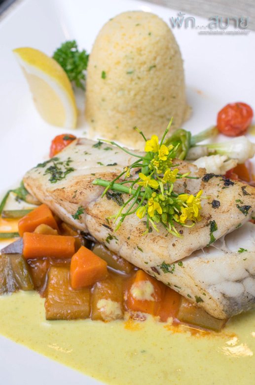 เมนูนี้ปลากระพงย่างสมุนไพร รสชาติจะออกกลางๆ ไปนิส