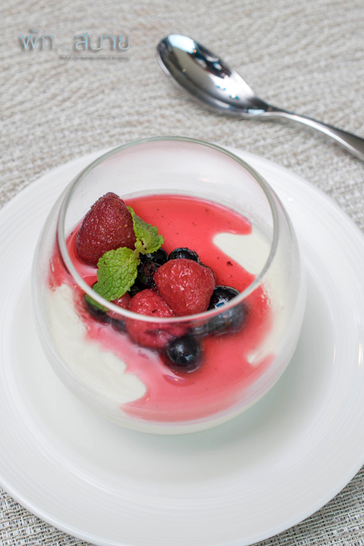 ถ้วยนี้แพนนาคอตต้า รสชาติโอเคเลย ถ้าใช้เบอรี่สดซะหน่อยนะจะกราบให้เลย